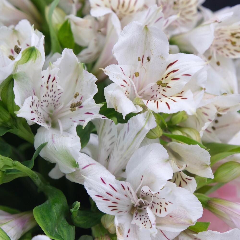 Альстромерия – 21 шт.подкормка для срезанных цветов – 1 шт.инструкция по уходу за цветами – 1 шт.упаковка (тишью и матовая пленка) – 1 шт.
