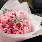 Эвкалипт – 3 шт.Тишью – 2 шт.Атласная лента – 2 шт.Матовая пленка – 2 шт.пионовидные розы – 15 шт.