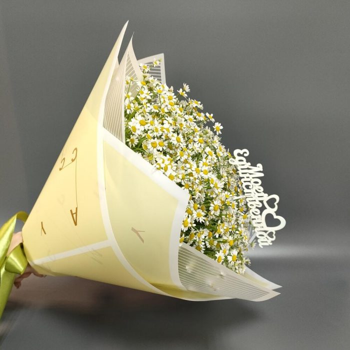 Матрикария – 21 шт.Пленка матовая – 1 шт.Лента атласная – 1 шт.Топпер – 1 шт.