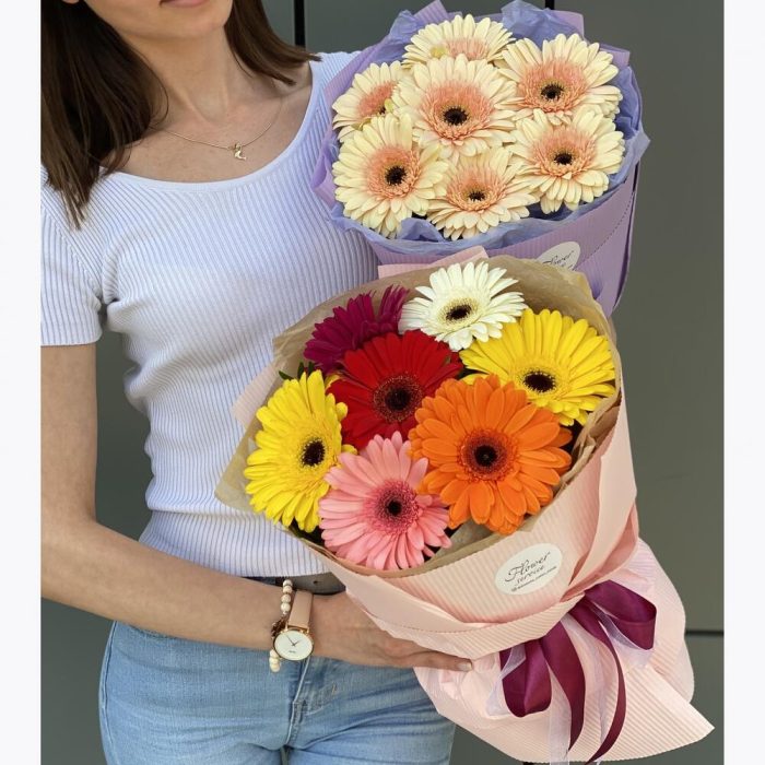 Букет из разноцветных гербер в оформлении!