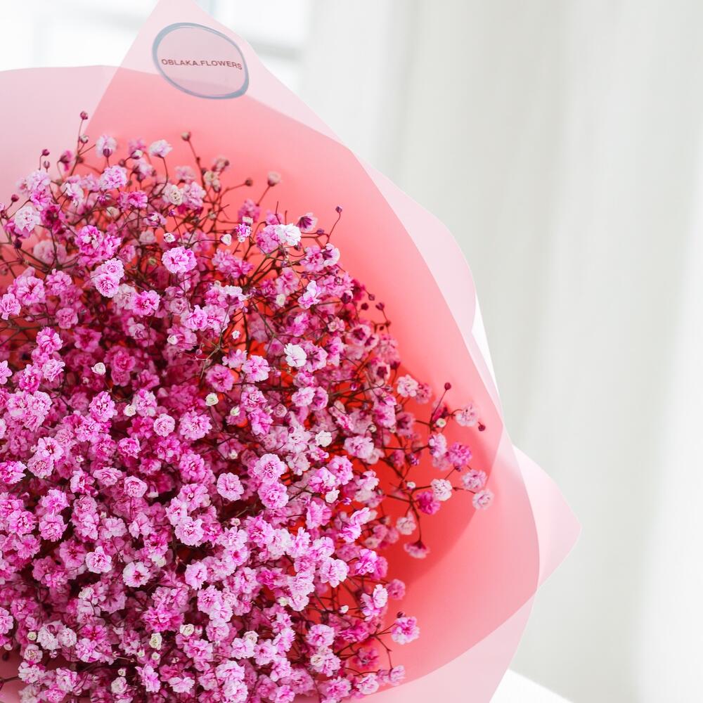 Очаровательный букет из воздушной гипсофилы. Ни одна дама, точно не останется равнодушной при виде такого букета .Инструкция по уходу за цветами прикреплена к каждому заказу.Цветы гипсофилы отличаются стойкостью и даже при высыхании не теряют, декоративности и цвета. Что позволяет, долгое время украшать интерьер в качестве сухоцветов.Подпишем открытку с вашими пожеланиями бесплатно