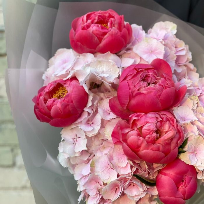 Букет из пионов и гортензий