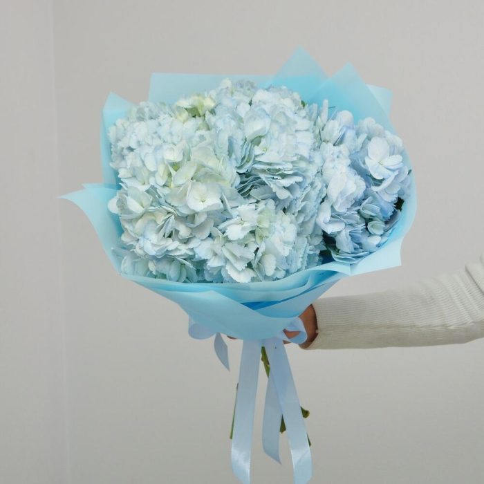 Гортензия – 5 шт.Лента атласная – 1 шт.Пленка матовая – 1 шт.подкормка для срезанных цветов – 1 шт.инструкция по уходу за цветами – 1 шт.хорошее настроение в подарок – 1 шт.