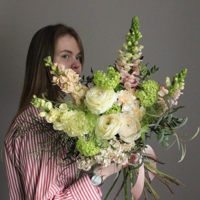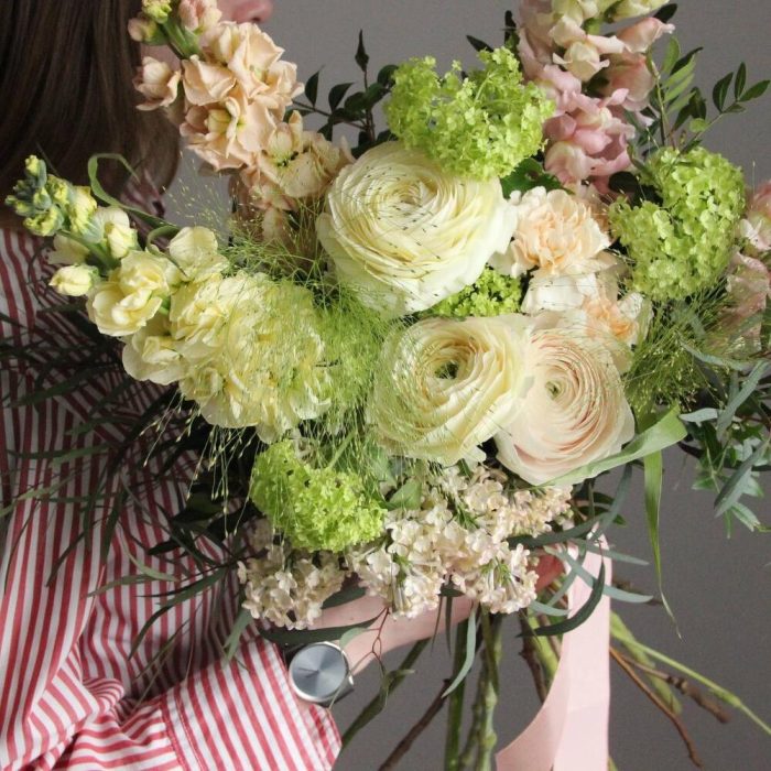 Букет с ранункулюсами и маттиолой
