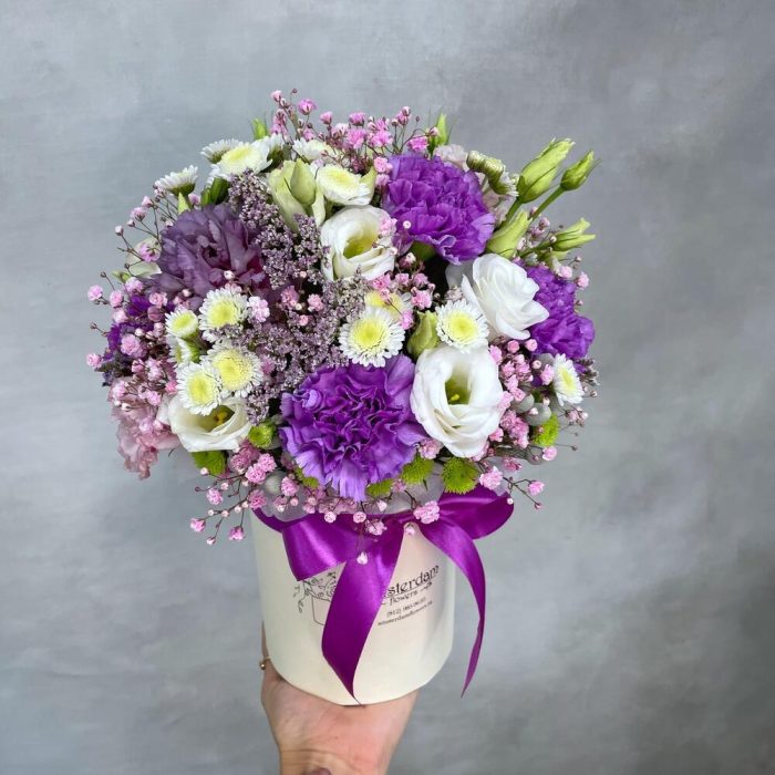 «Лавандовое созвездие» Букет из розы, гвоздики, статица и хлопка