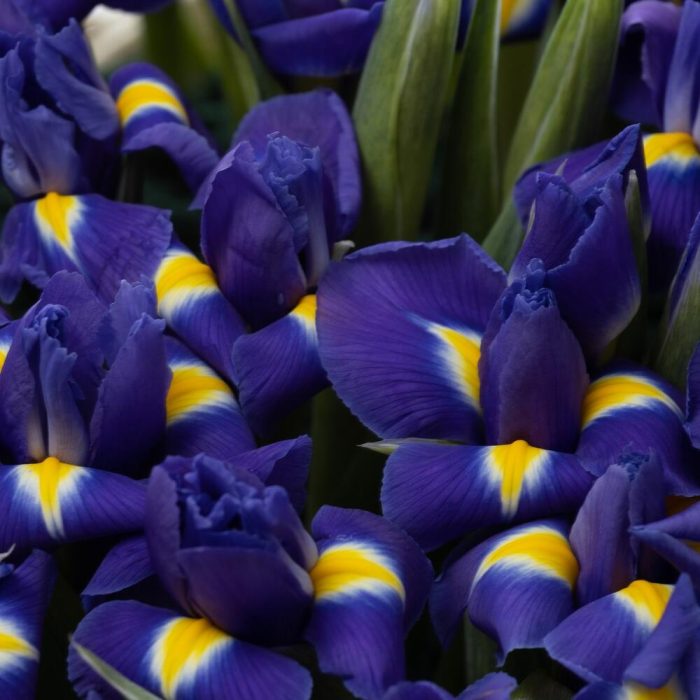 Ирис – 51 шт.Корзина плетеная – 1 шт.Лента атласная – 1 шт.Открыточка с вашими пожеланиями – 1 шт.хорошее настроение – 100 шт.инструкция по уходу за цветами – 1 шт.Кризал – 1 шт.