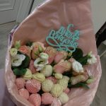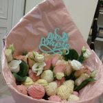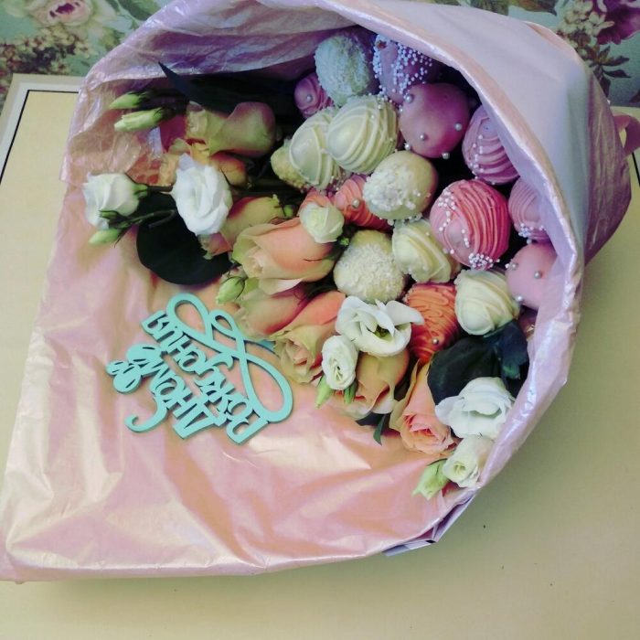 Букет клубника в шоколаде с розами ” Розовый фламинго”