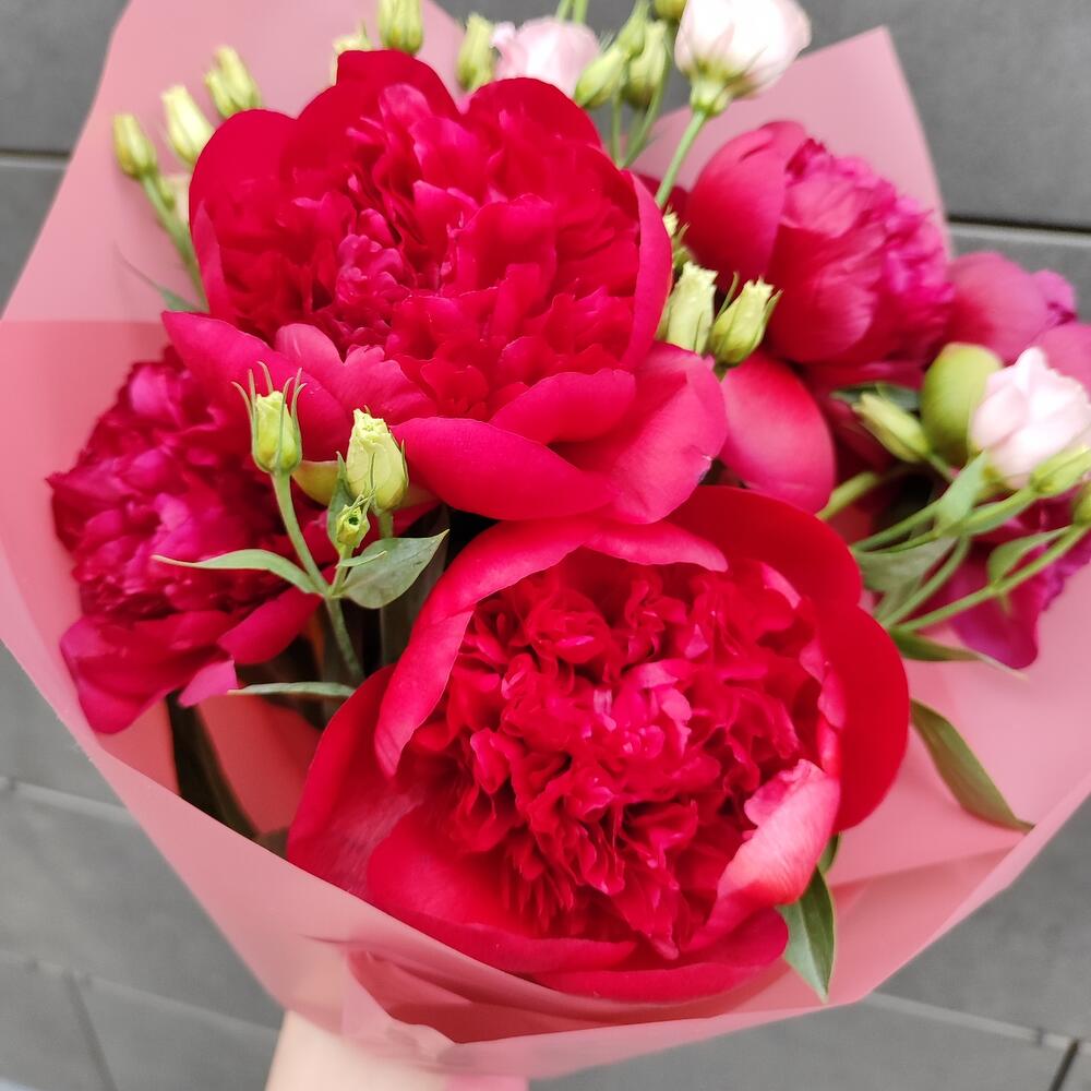 Эвкалипт – 1 шт.Эустома – 1 шт.пионы – 5 шт.