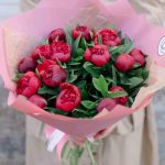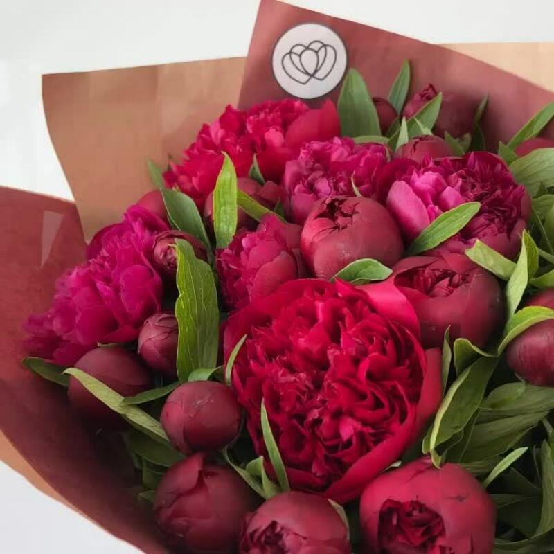 Букет из 15 бордовых пионов Standart