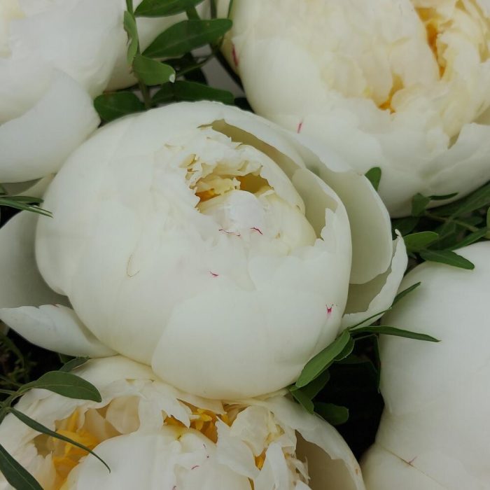 Зелень – 8 шт.Лента атласная – 1 шт.Пион премиум – 9 шт.Упаковка пленка матовая – 2 шт.