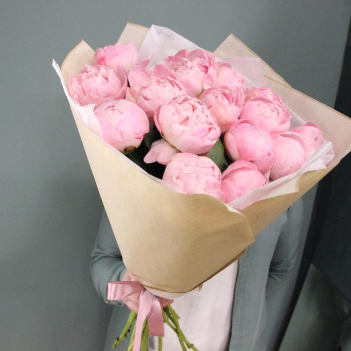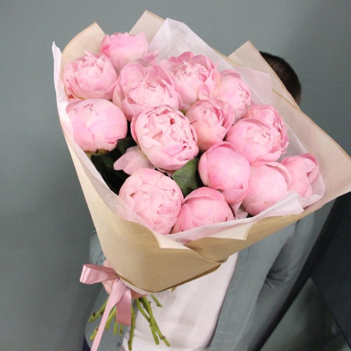 Букет из 15 нежных розовых пионов, в лаконичной упаковке.