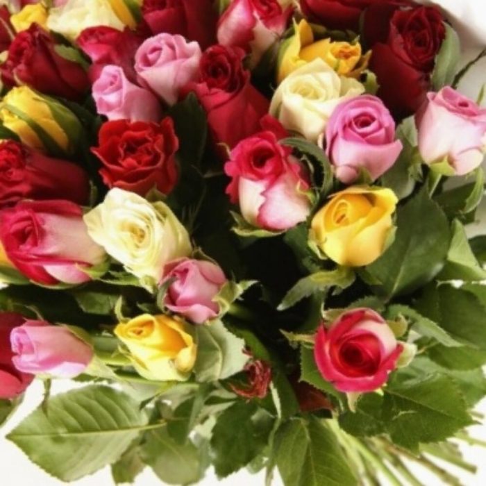 Лента атласная – 1 шт.Упаковка дизайнерская – 1 шт.роза микс – 51 шт.