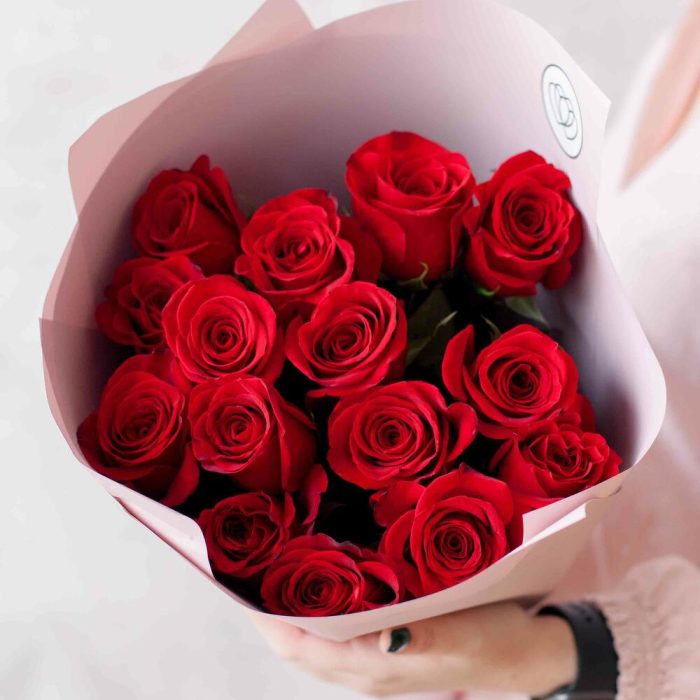 Букет из 15 красных роз 70см