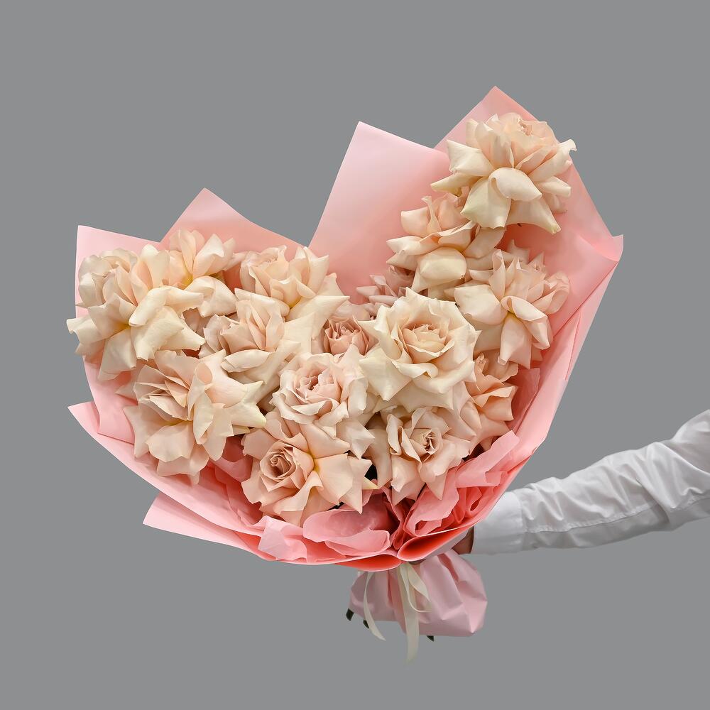 Букет из 15 кремовых французских роз