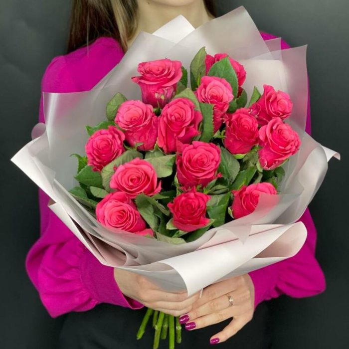 Букет из 15 малиновых роз