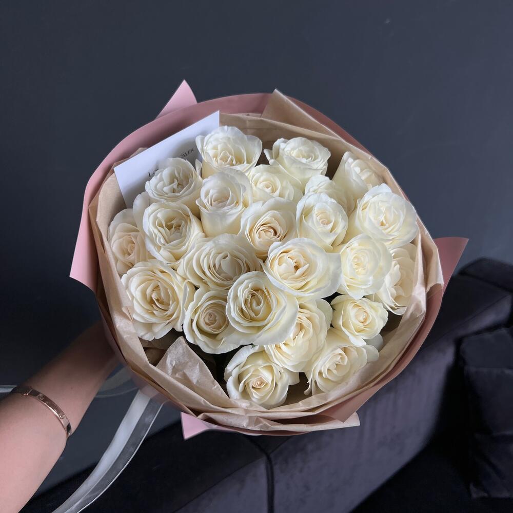 Букет из 23 белых высоких роз
