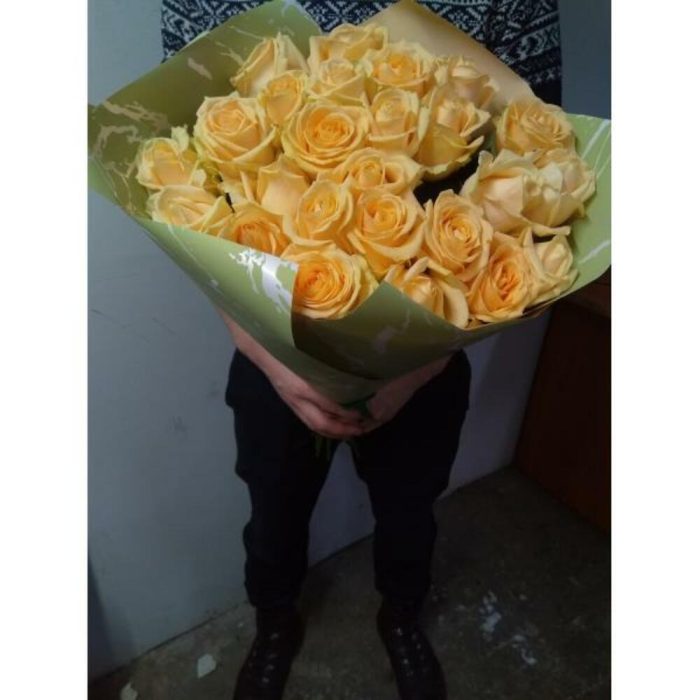 Букет из 25 роз, Пич Аваланш, кремовый длиной 60 см, производства Россия