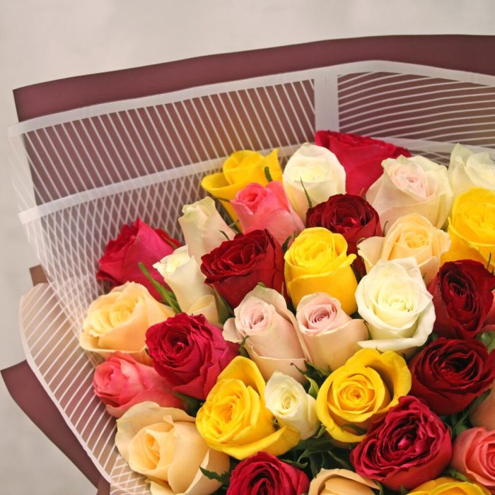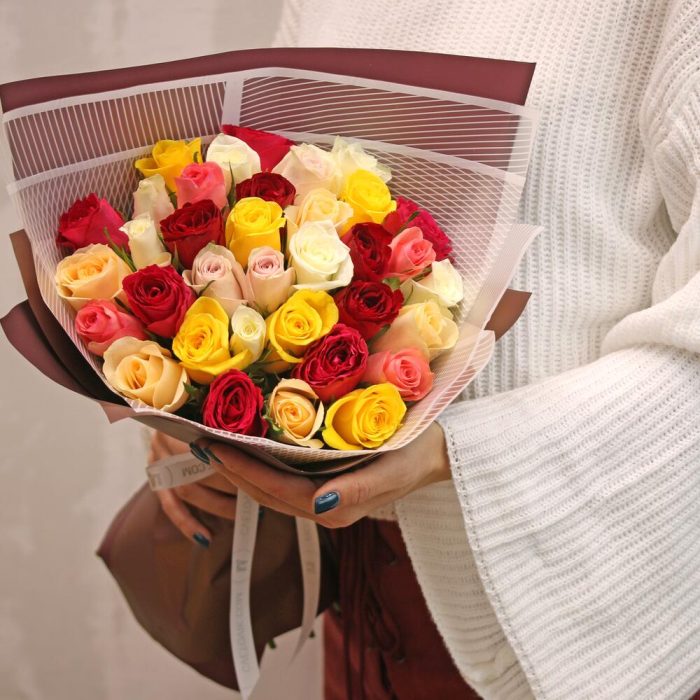Букет из 35 роз микс 35-40 см (Кения) в упаковке