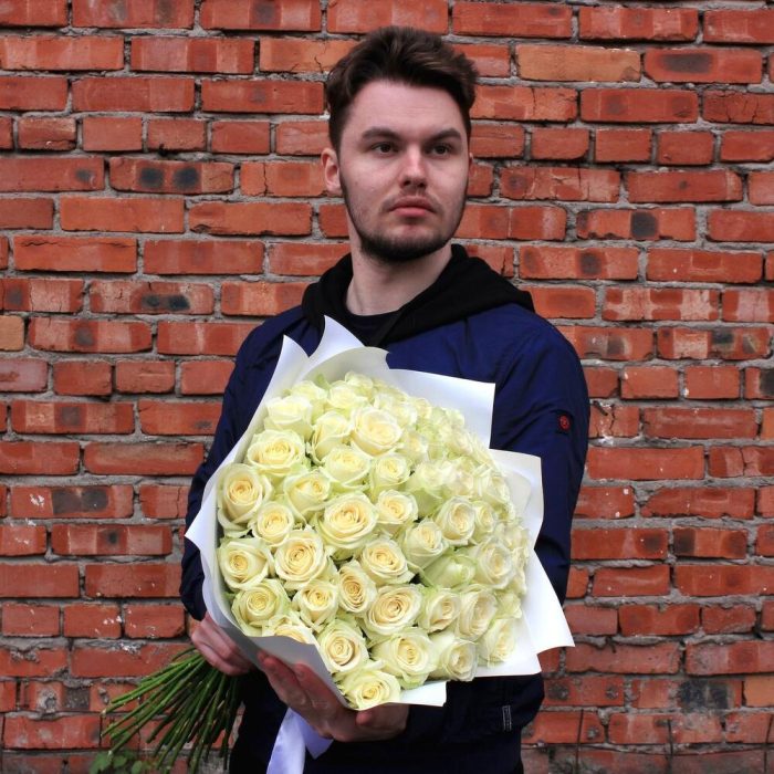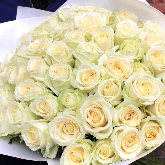 Роза Аваланж – 51 шт.Лента атласная – 1 шт.упаковочный материал – 3 шт.