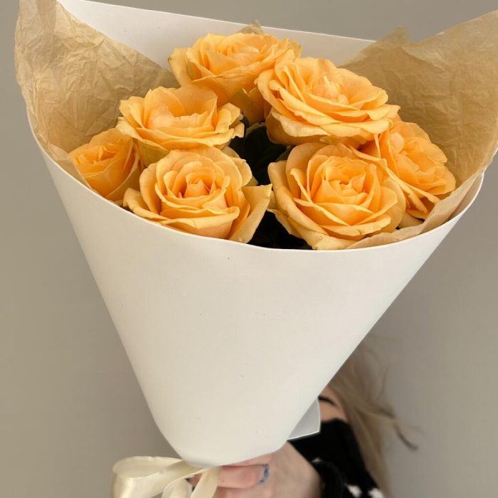 Роза – 7 шт.Лента атласная – 1 шт.Упаковка дизайнерская – 2 шт.