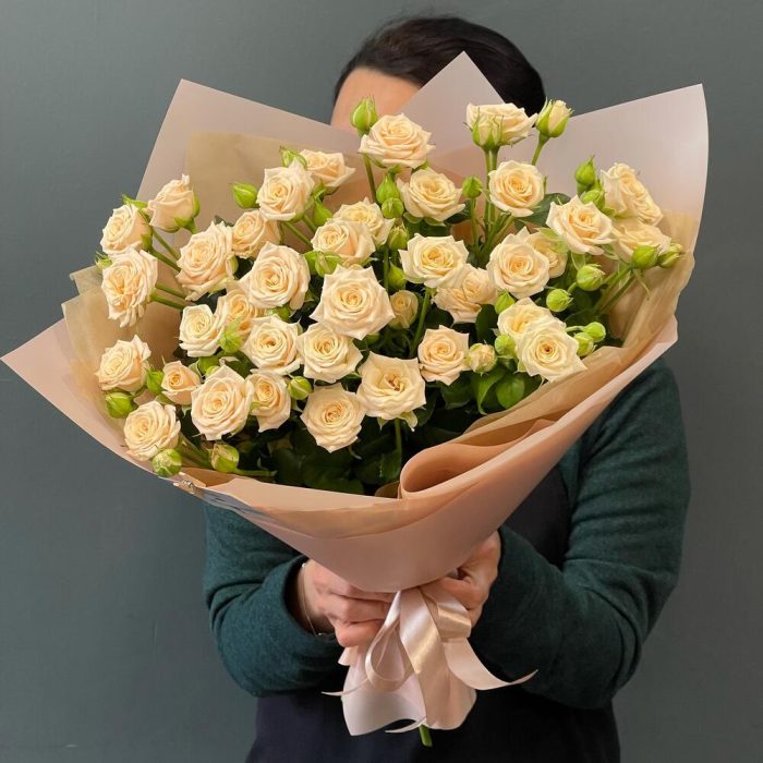 Букет из кремовых кустовых роз “Тоффи”