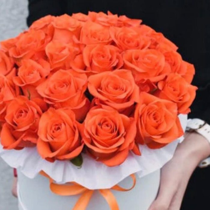 Букет из оранжевых роз в шляпной коробке