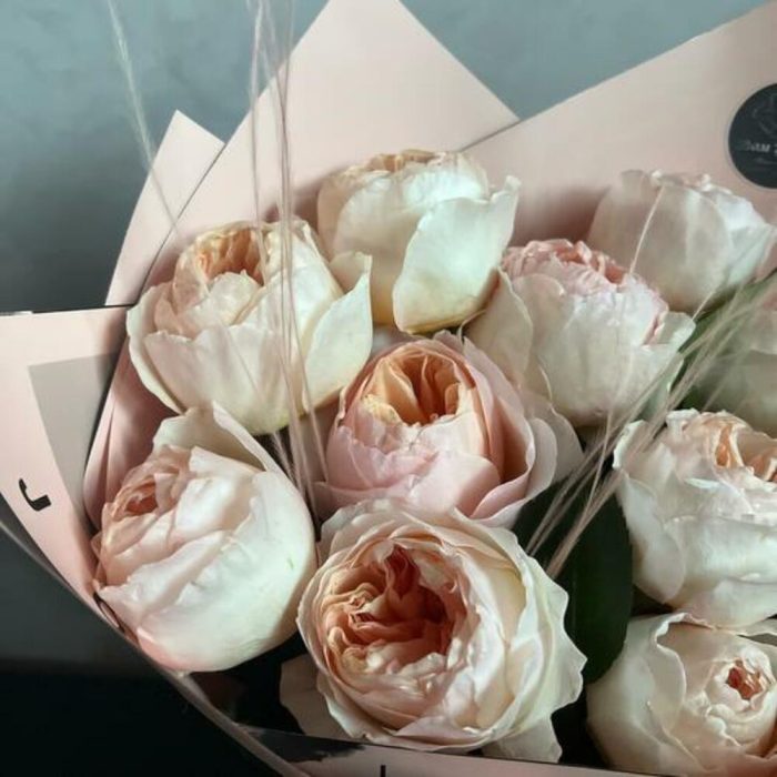 Пионовидная садовая роза – 11 шт.пучок сухоцветов – 3 шт.декоративная упаковка – 1 шт.Атласная лента – 1 шт.