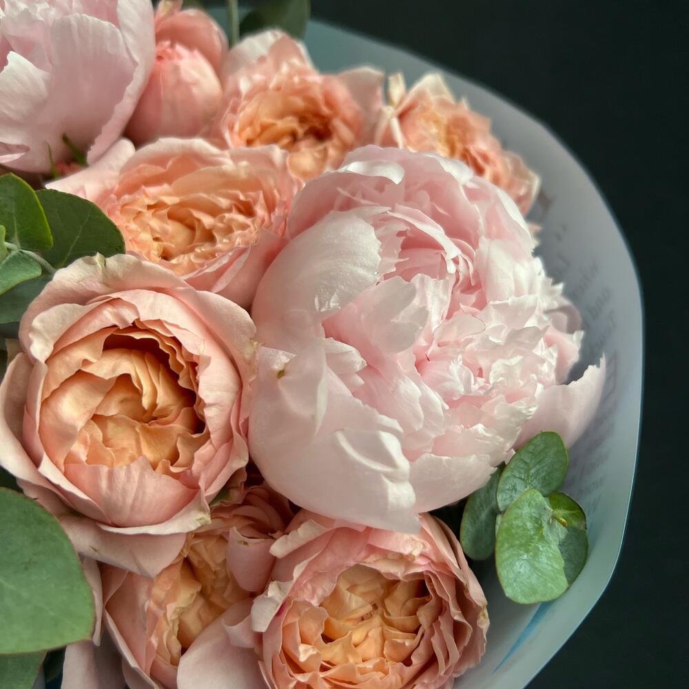 Букет с пионами и пионовидной розой