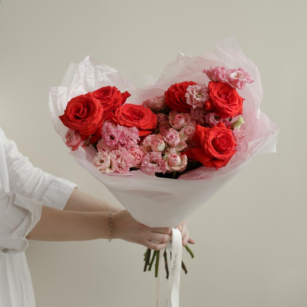 Категорий: Гвоздики, Кустовые розы, Лизиантусы, Пионовидные розы, Розы