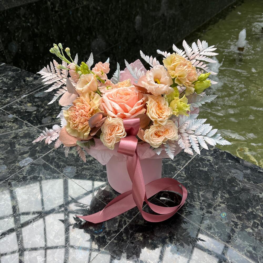 Цветочная композиция в шляпной коробочке