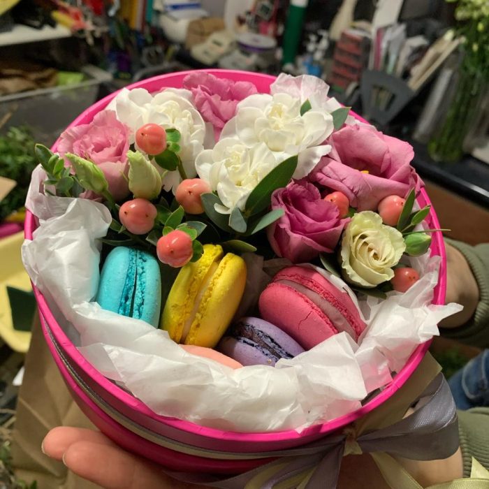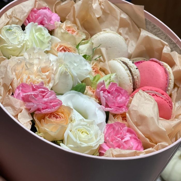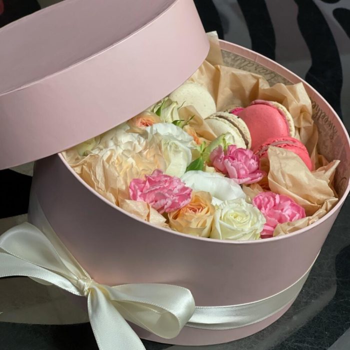 Цветы в коробке с Макарунами
