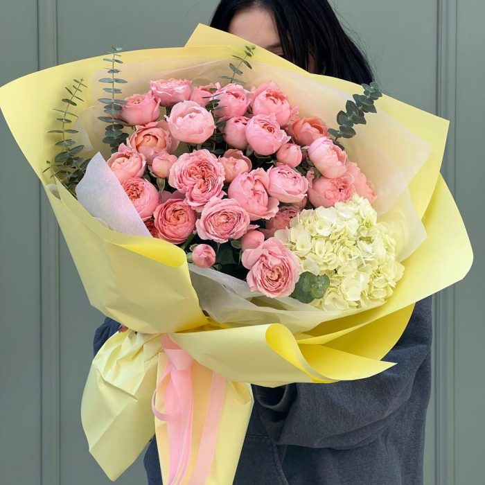 Гвоздики, Кустовые розы, Лизиантусы, Пионовидные розы, Розы
