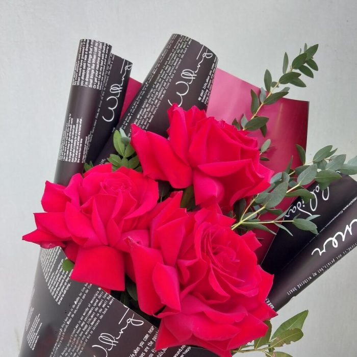 Эвкалипт – 2 шт.Лента атласная – 1 шт.Фисташка – 5 шт.Упаковка дизайнерская – 4 шт.Роза французская пионовидная – 3 шт.