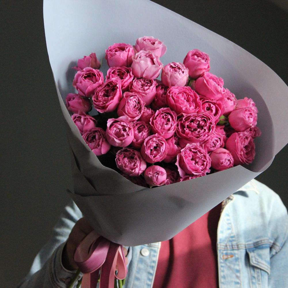 Роза пионовидная кустовая – 7 шт.Упаковка – 2 шт.Лента атласная – 2 шт.
