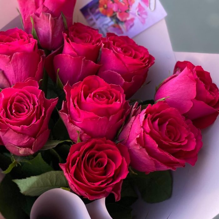 Монобукет роз «Фуксия» с открыткой