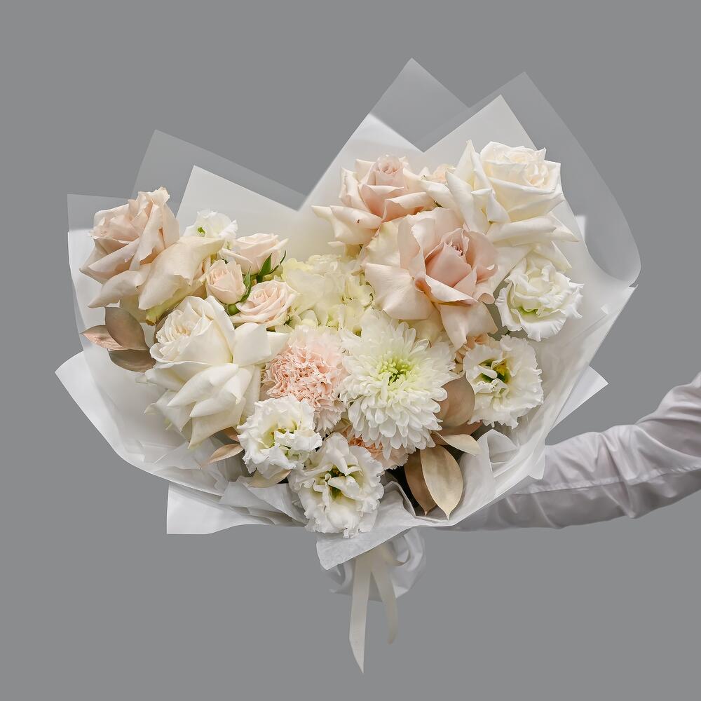 Категорий: Гвоздики, Гортензии, Кустовые розы, Лизиантусы, Розы, Хризантемы