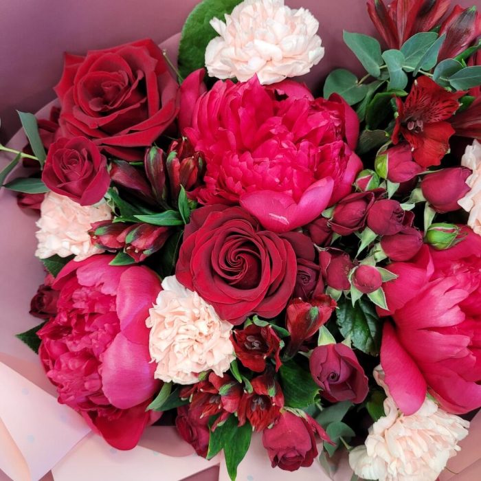 Гвоздики, Кустовые розы, Пионовидные розы, Розы
