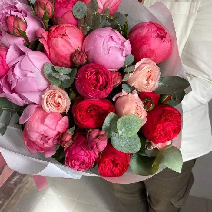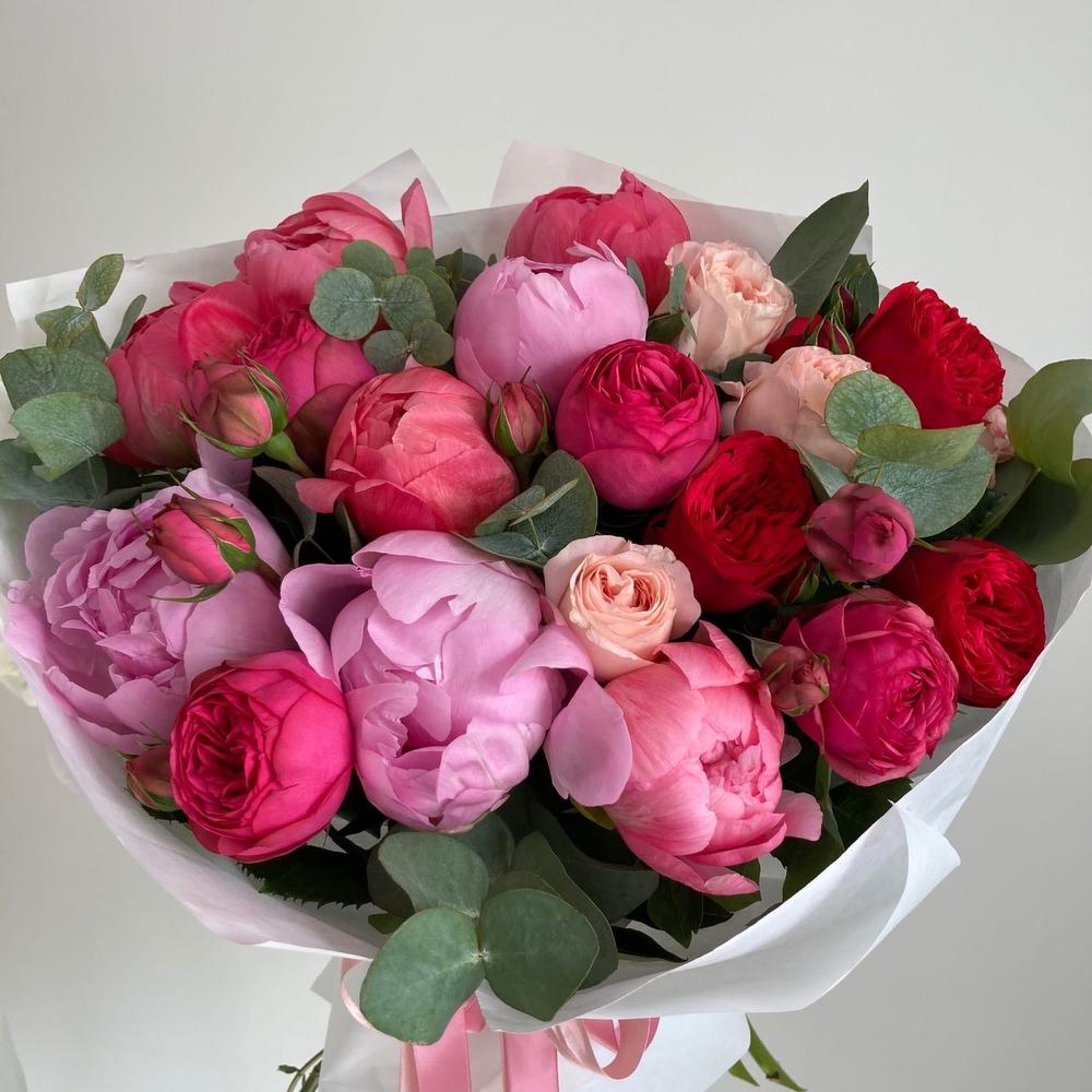 Гвоздики, Кустовые розы, Пионовидные розы, Розы
