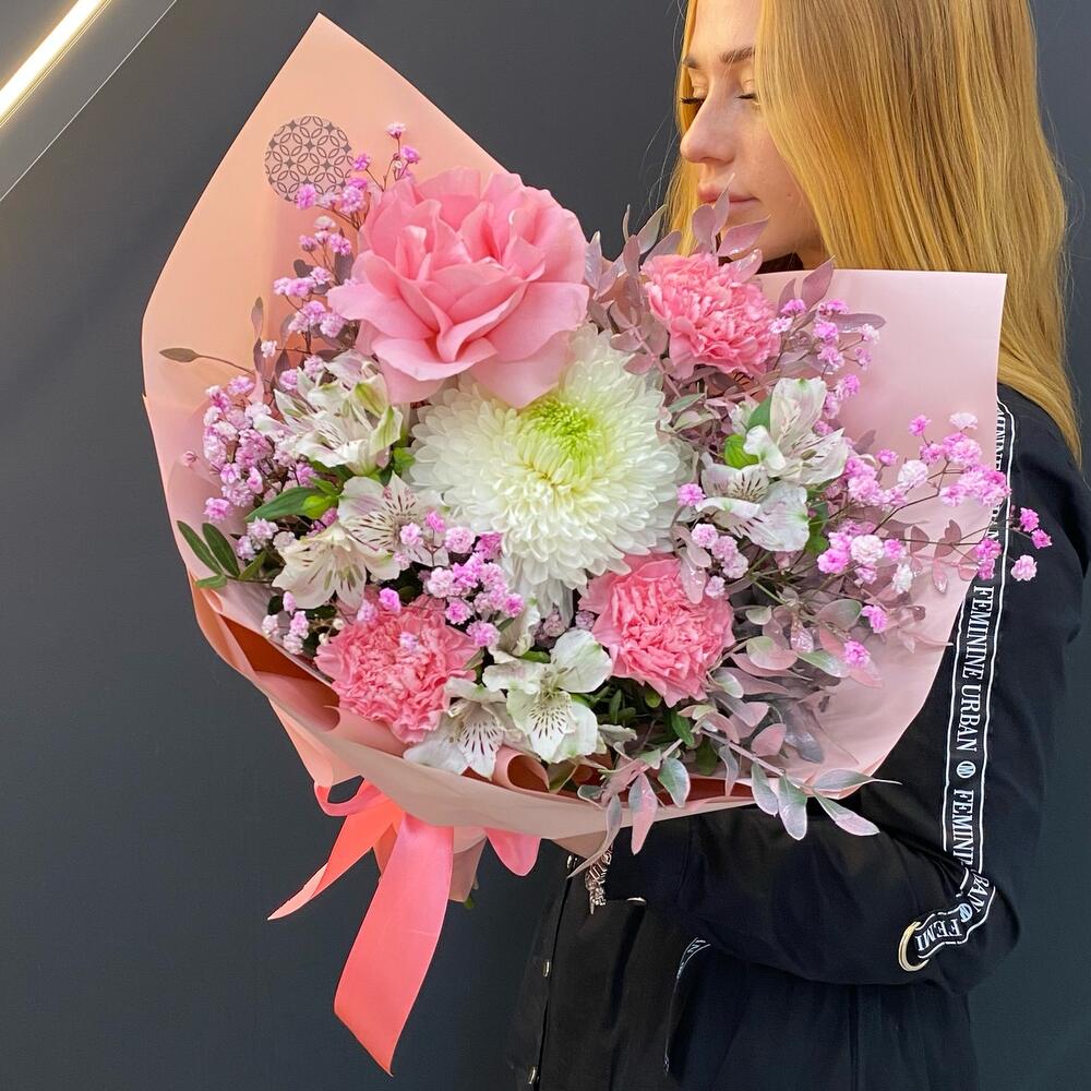 Категорий: Альстромерии, Гвоздики, Гипсофила, Розы, Хризантемы