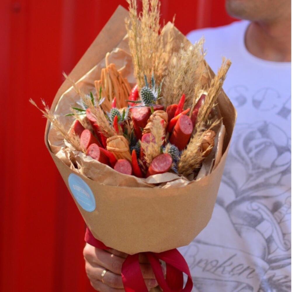 Мужской букет с колбасками и сыром