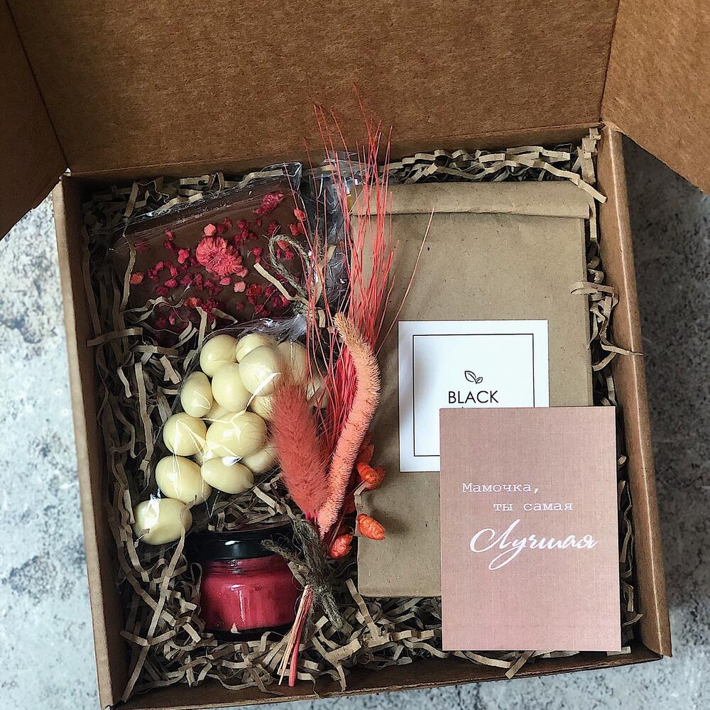 Трогательный и красиво оформленный подарок, который действительно удивит и порадует самого родного человека в приближающийся Международный Женский День, на День Рождения или даже без повода, в знак большой любви! Состав подарочка оригинальный и практичный: Вкусный листовой … Показать ещёчай в пакетике 30г, баночка польезного крем-меда 35г, оригинальное драже – клюква в белом шоколаде 50г и нежнейший бельгийский шоколад ручной работы с кусочками ягод. Все это дополнено душевной открыткой “Мамочка, ты самая лучшая!”, букетиком сухоцветов и компактной экологичной крафт-коробочкой с милым бантиком. Размеры бокса – 17х17х7см. Каждый подарок дополнительно упакован в пупырчатую пленку и еще одну картонную коробку, для надёжной защиты вашего подарочка!