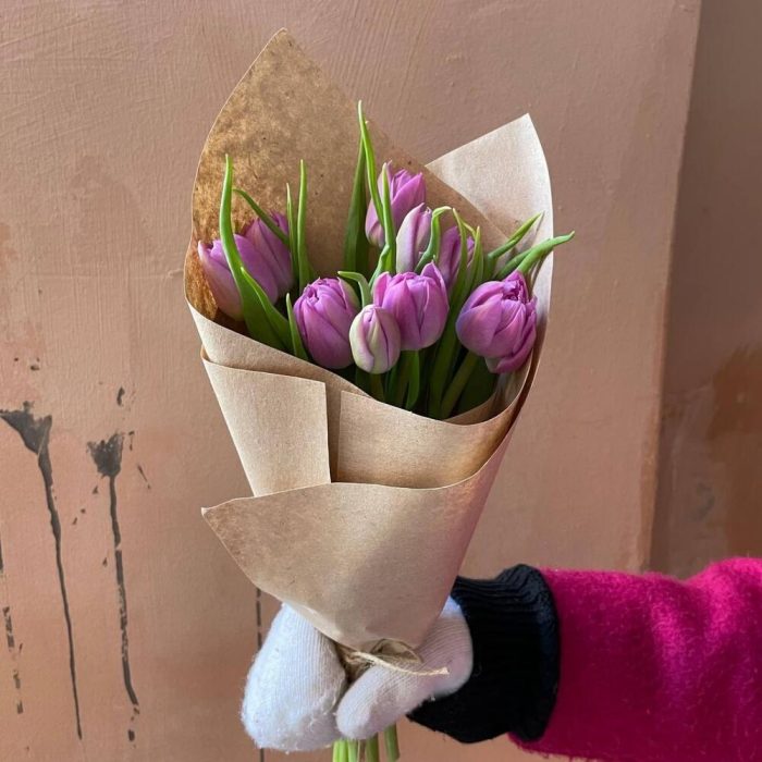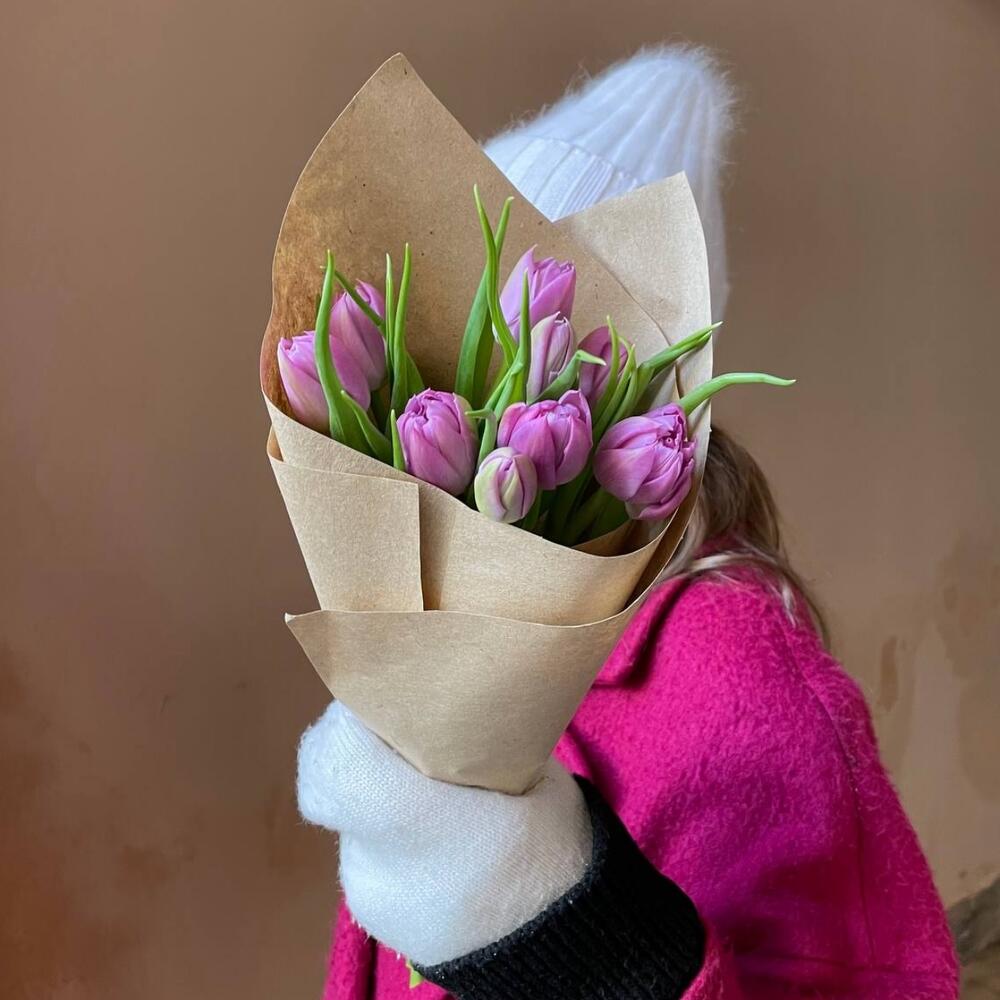Крафтовая упаковка – 1 шт.сиреневый пионовидный тюльпан – 9 шт.